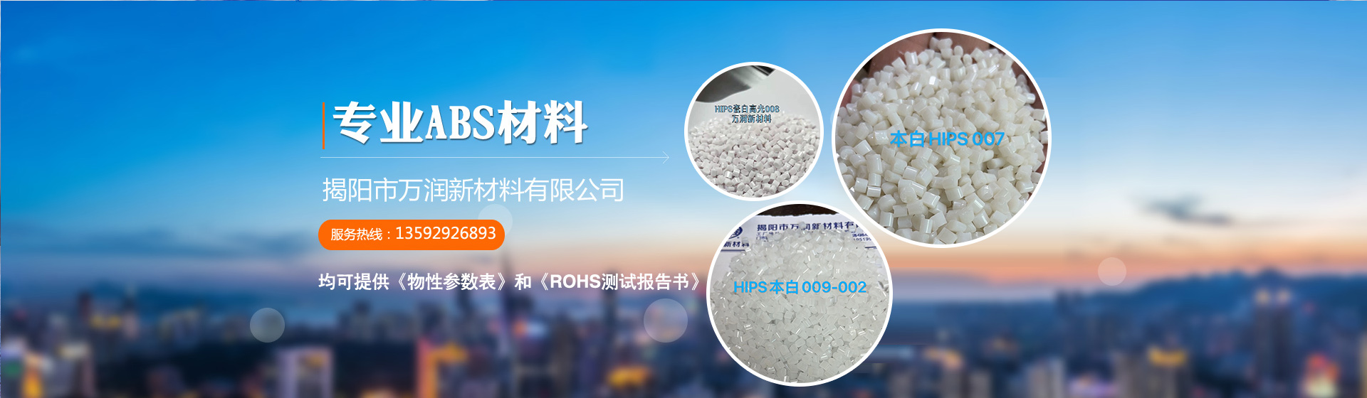 揭陽(yáng)市萬(wàn)潤(rùn)新材料有限公司成立于2013年,坐落于廣東省揭陽(yáng)市揭東區(qū)玉滘鎮(zhèn)陶瓷科技園,占地面積3萬(wàn)多平。本公司是一家致力于塑料改性及研發(fā)、生產(chǎn)、銷(xiāo)售為一體的高新科技型企業(yè)。公司主營(yíng)ABS、HIPS、PC、PC/ABS、PP、三大板塊改性塑料。產(chǎn)品廣泛應(yīng)用于:大小家電器產(chǎn)品、新能源汽車(chē)零部件、新能源電動(dòng)車(chē)零部件、通訊產(chǎn)品、辦公體育用品、鞋材、箱包、玩具等等,可根據(jù)客戶(hù)需求開(kāi)發(fā)定制加工,滿(mǎn)足客戶(hù)的不同需求。